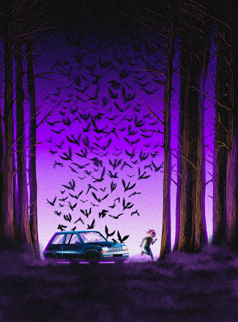 Illustration for two book cover, Les oiseaux de malheur and Ça leur apprendra à sortir la nuit.
